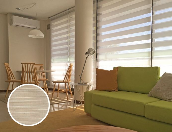 As Cortinas Double Vision oferece a mais alta qualidade e tecnología. Fabricada em tiras de um firme tecido 100% poliéster com revestimento de um polímero acrílico aquoso, oferece um tênue controle da luz e transparência ao exterior. O fechamento completo das listras oferece privacidade e um grau de escurecimento de acordo ao tecido escolhido.