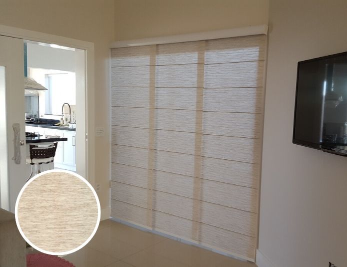 As Cortinas Painel podem ser confeccionadas com diversos tipos de tecidos de ultima geração que garantem variados tons e nível de proteção solar. Montadas em trilho, garantem a sobreposição dos painéis, obtendo
