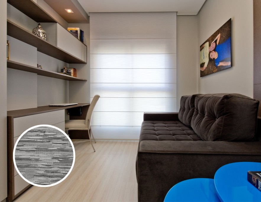 As Cortinas Romana podem ser confeccionadas com diversos tipos de tecidos de ultima geração que garantem variados tons e nível de proteção solar. Confeccionadas com varetas para dar um toque de elegância com sua forma de tiras horizontais.